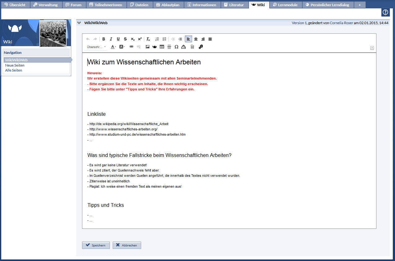 Stud.IP Hilfe: Anwenderhilfe » Veranstaltungen » Das Wiki