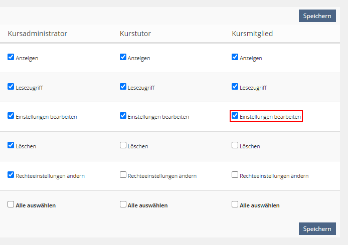 Um Ihren Studierenden (Kursmitgliedern) das Bearbeiten der Mindmap zu erlauben, müssen Sie über den Reiter "Rechte" das Recht "Einstellungen bearbeiten" aktivieren.