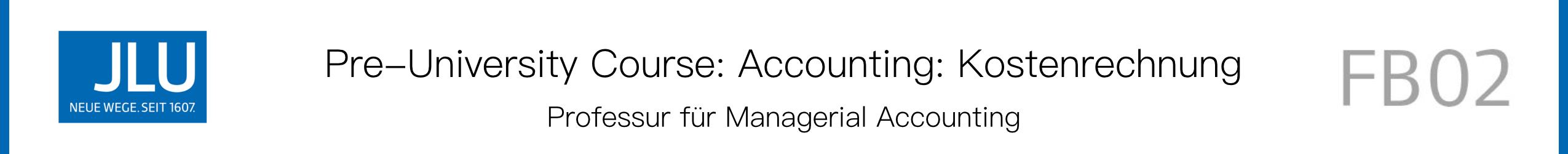 Vorlesung: Termine, Ort, Dozent, Prüfung Bestandteile des Pre-University Course "Kostenrechnung":