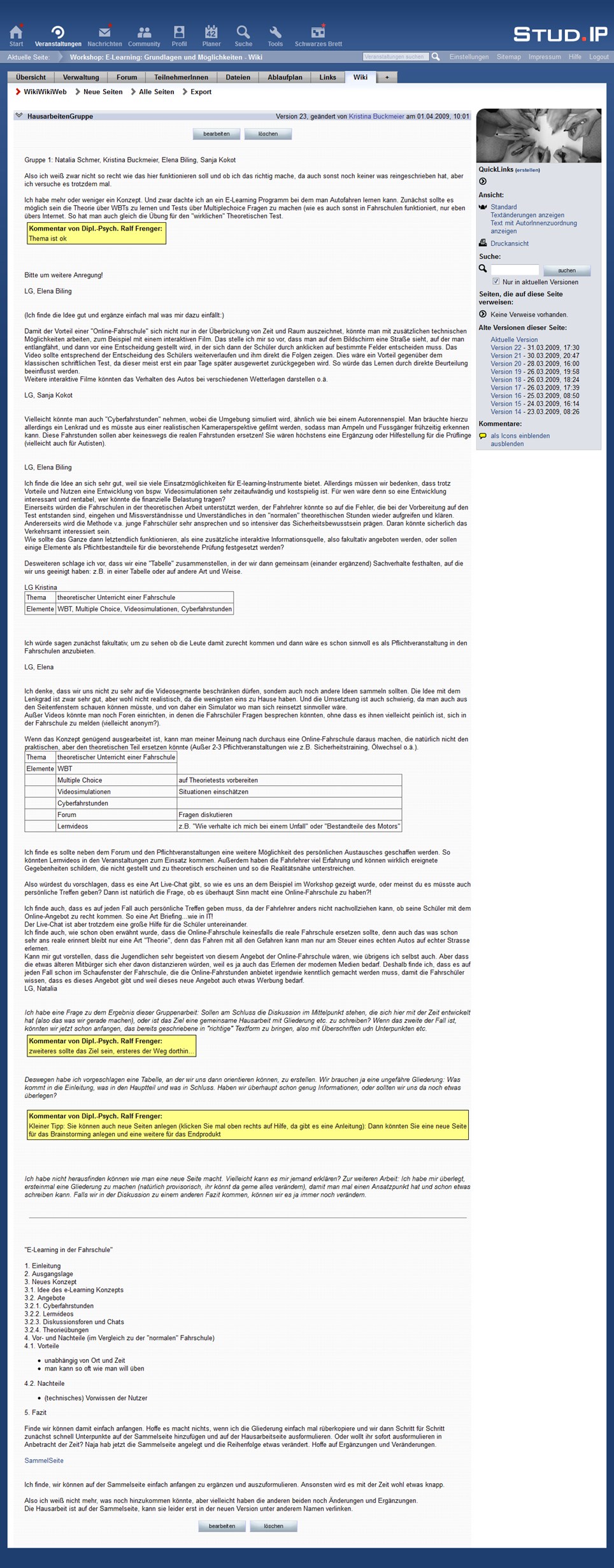 Umsetzung im Stud.IP-Wiki (Screenshots)
