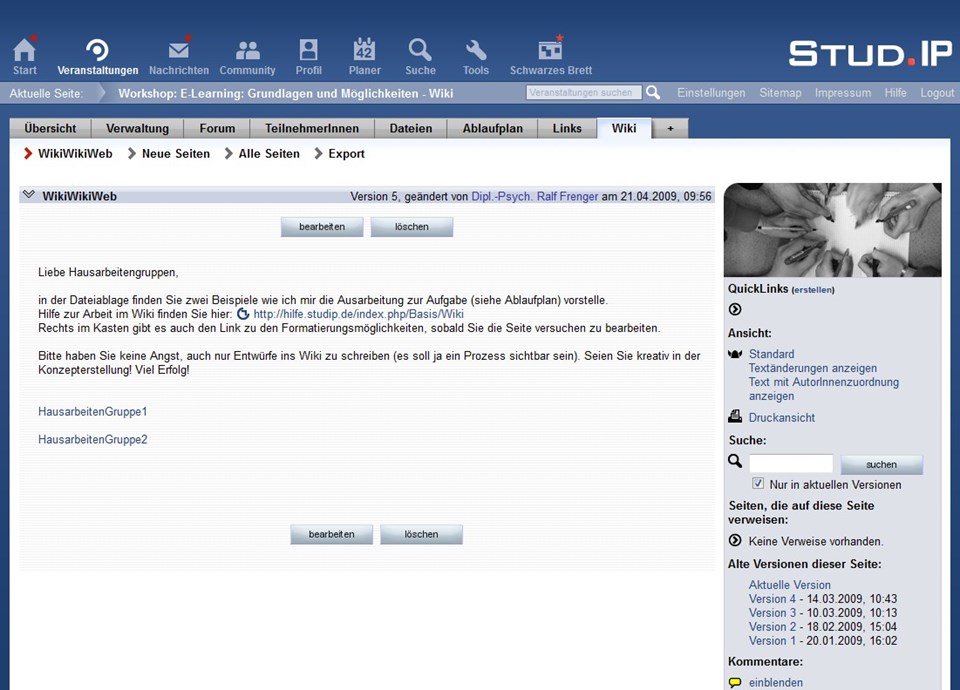 Umsetzung im Stud.IP-Wiki (Screenshots)