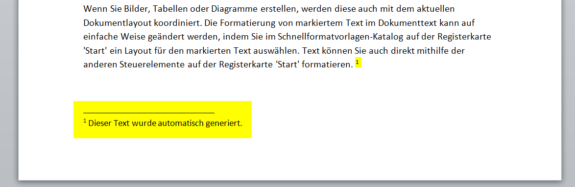 Die Fußnotenfunktion ist denkbar einfach. Aufgerufen mit dem Programm Ihrer Wahl verknüpft Sie eine Textstelle über eine fortlaufende Ziffer oder einen Buchstaben mit einer Stelle am Ende der Seite, an der weitere Informationen und Anmerkungen zu der betreffenden Textstelle stehen können.