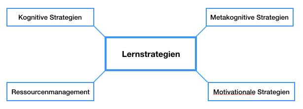 The term “learning strategies” can be subdivided into cognitive strategies, metacognitive strategies, resource management and motivational strategies. Click on the corresponding sections of the following diagram to view a definition of the respective strategy. Bear in mind that the majority of strategies and methods can be assigned to multiple areas that themselves overlap in some cases.