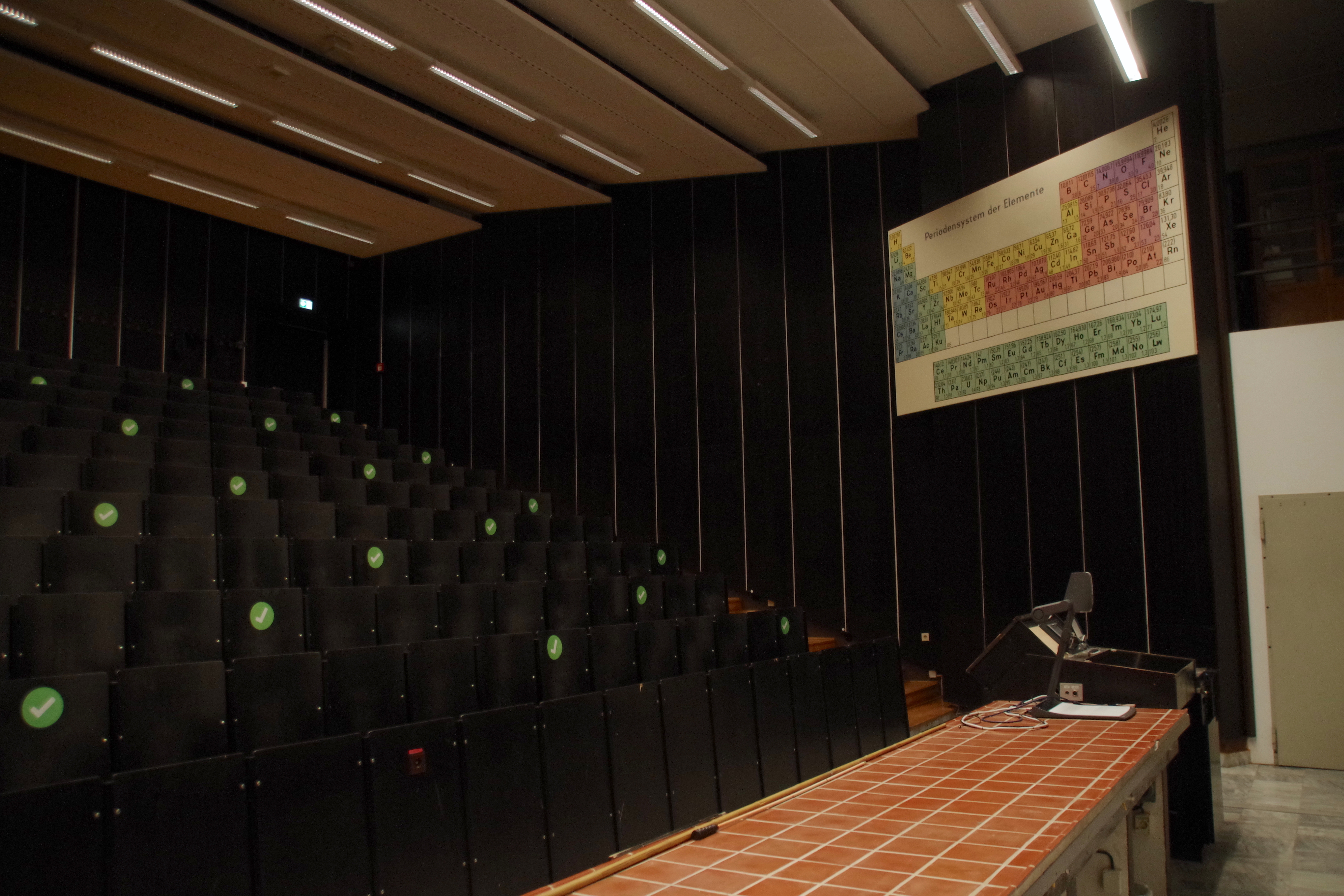 - Wie viel Platz werden Sie vorne haben? Gibt es z. B. eine Bühne bzw. Anhöhe, ist ein Tisch vorhanden oder gibt es lediglich einen gemeinsamen Tisch? Wieviel Platz ist zwischen Tafel und Tisch? Je nachdem, was Sie wie präsentieren, benötigen Sie ggf. einen bestimmten Raum. Prüfen Sie dies bitte vorab.