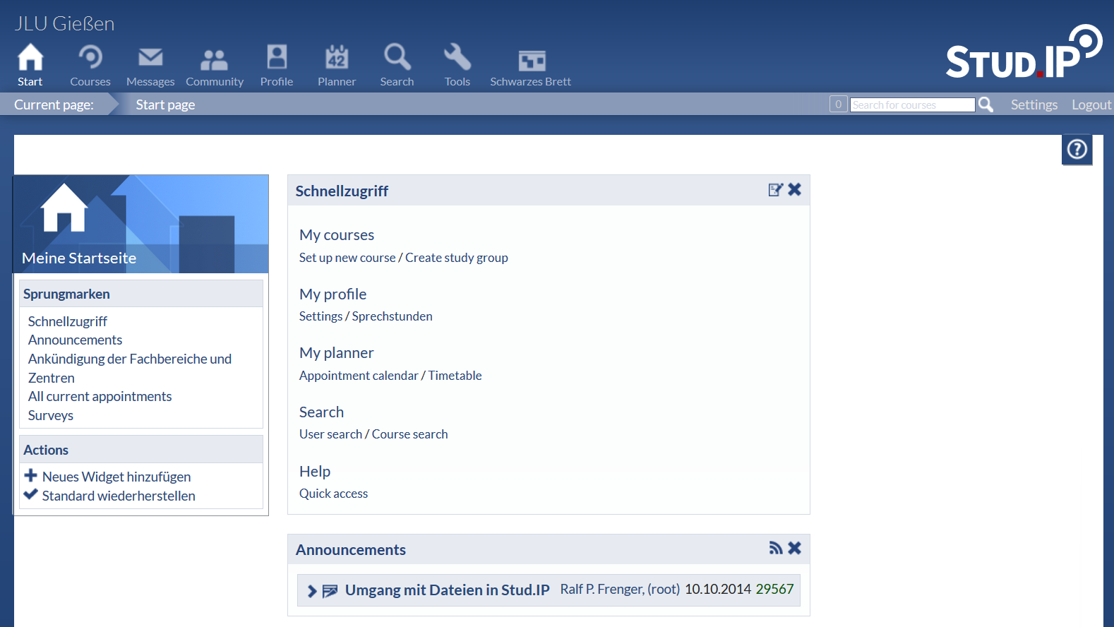 Departmental student bodies also use Stud.IP for the distribution and exchange of information.
