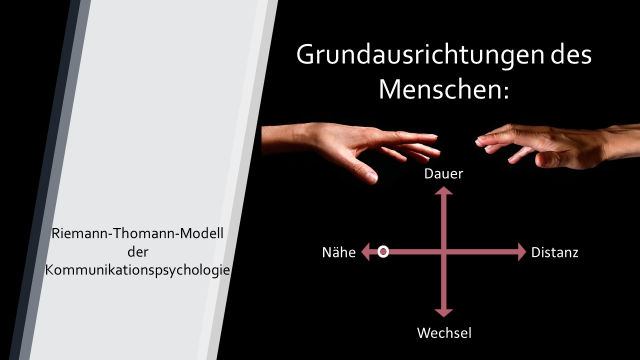 Beim Riemann-Thomann-Modell der Kommunikationspsychologie wird davon ausgegangen, dass die vier kommunikationspsychologischen Grundausrichtungen Nähe vs. Distanz und Dauer vs. Wechsel bei Menschen unterschiedlich stark ausgeprägt sein können.[3]