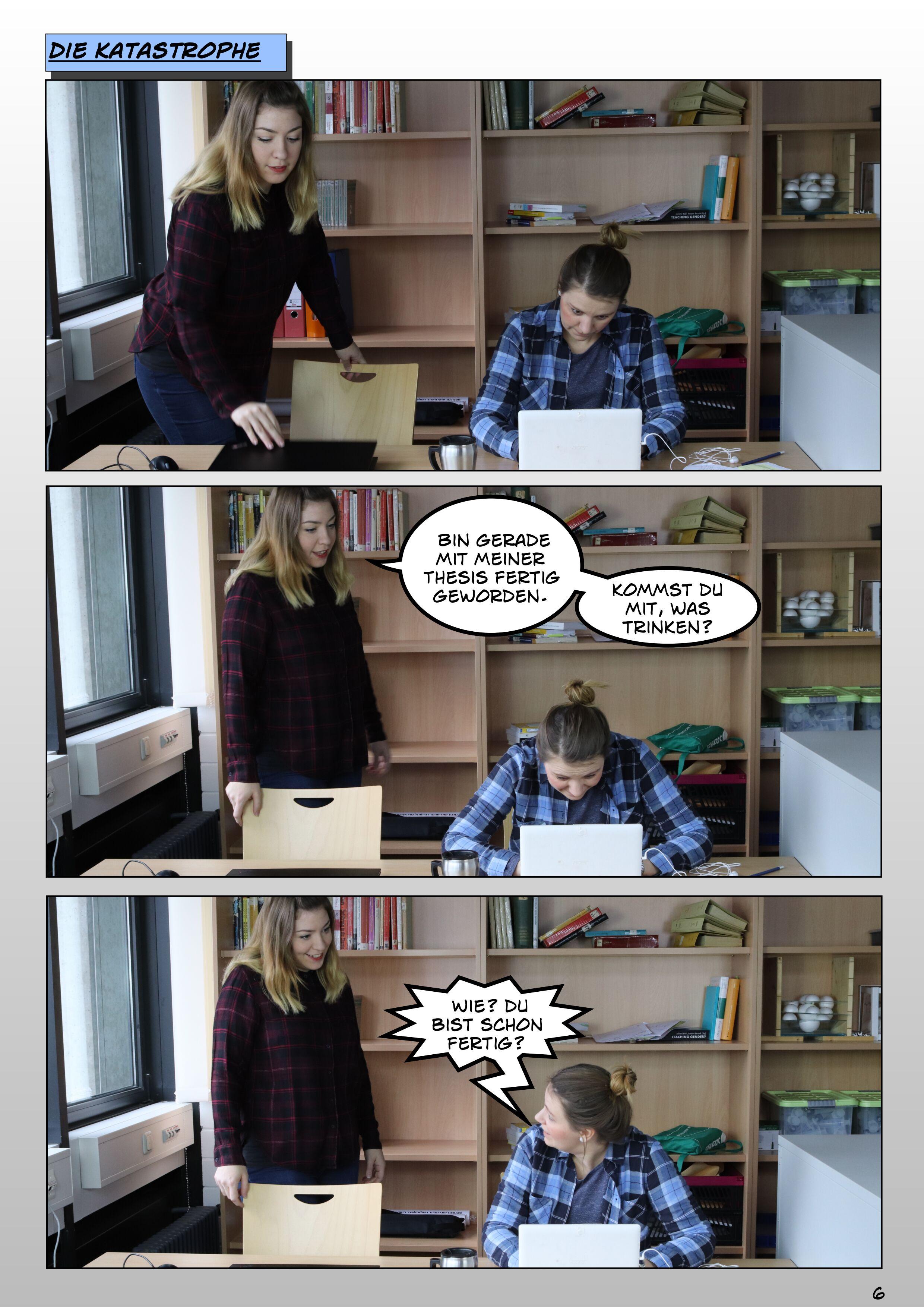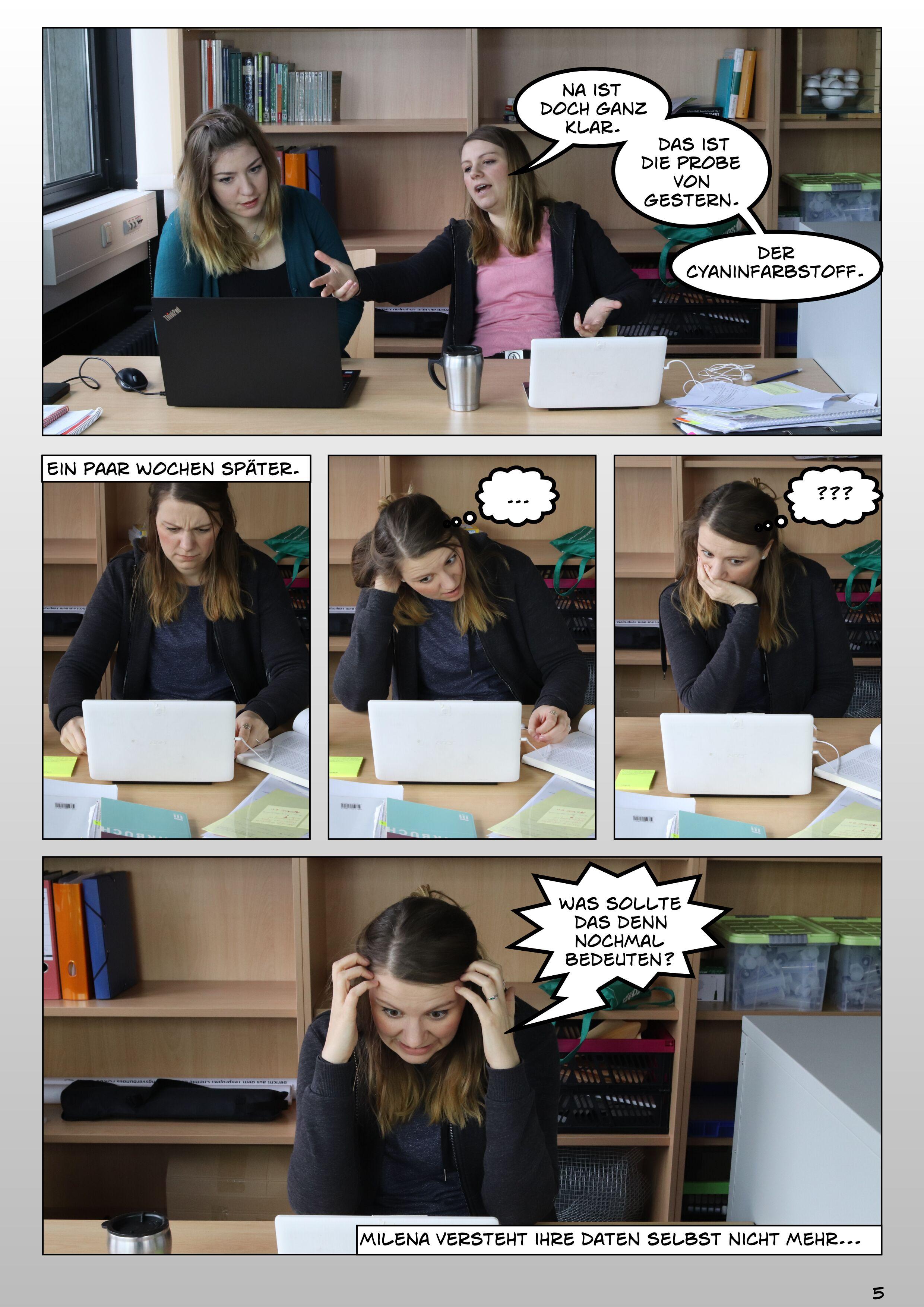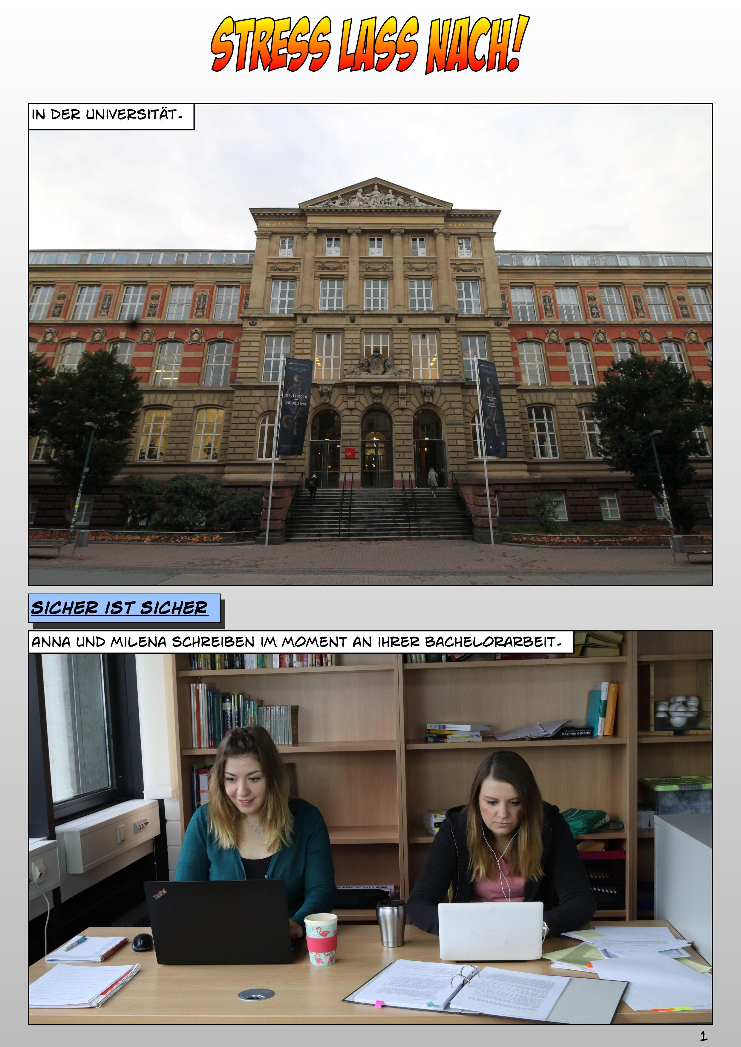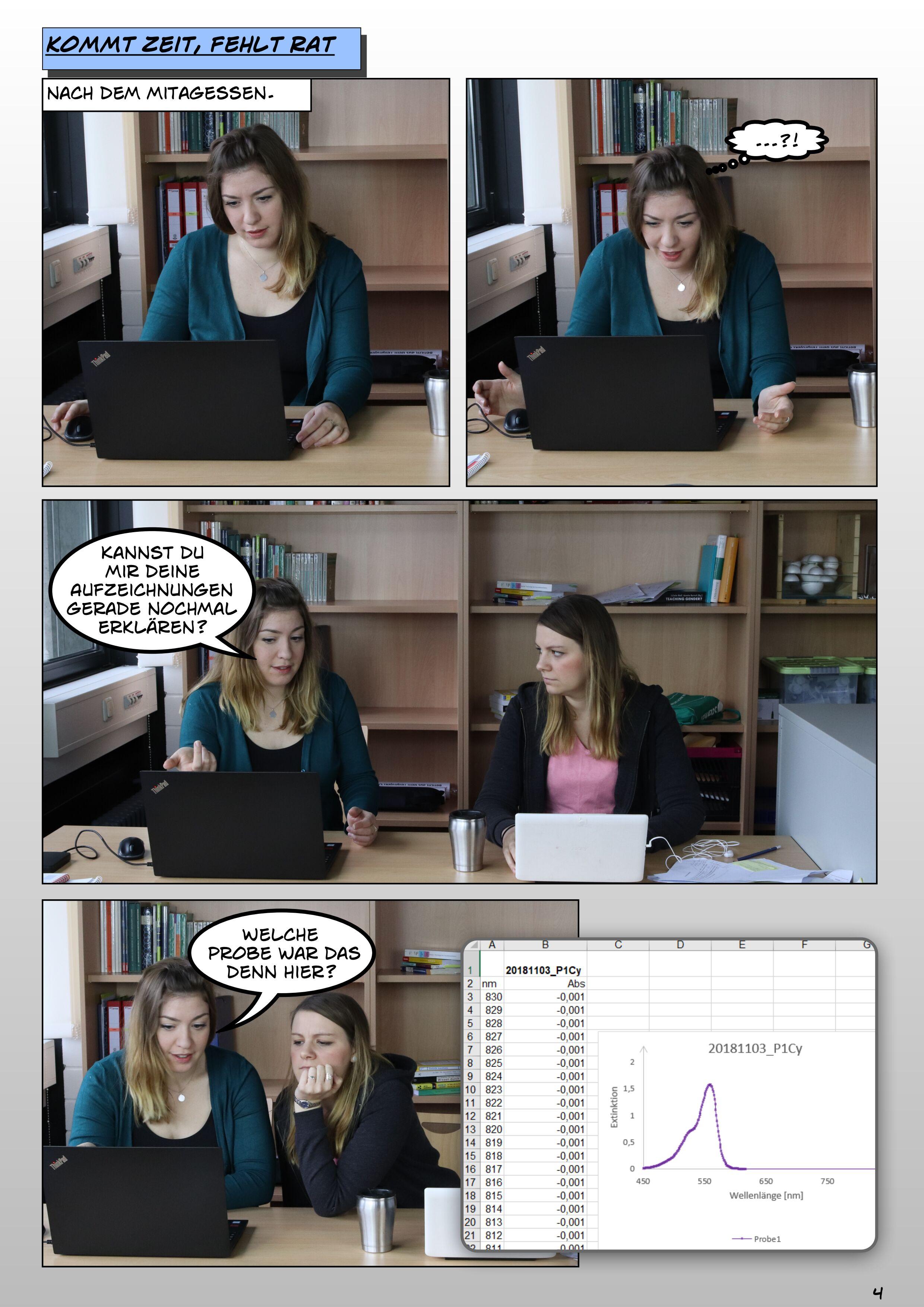 Abb. 1.1: Stress lass nach. Eine Bildergeschichte zum Forschungsdatenmanagement. Erstellt von Julia Werthmüller und Tatjana Jesserich, Projekt FOKUS, Forschungsdatenkurse für Graduierte und Studierte, 2019. CC BY-SA 4.0 Gefördert vom BMBF 2017 bis 2019.