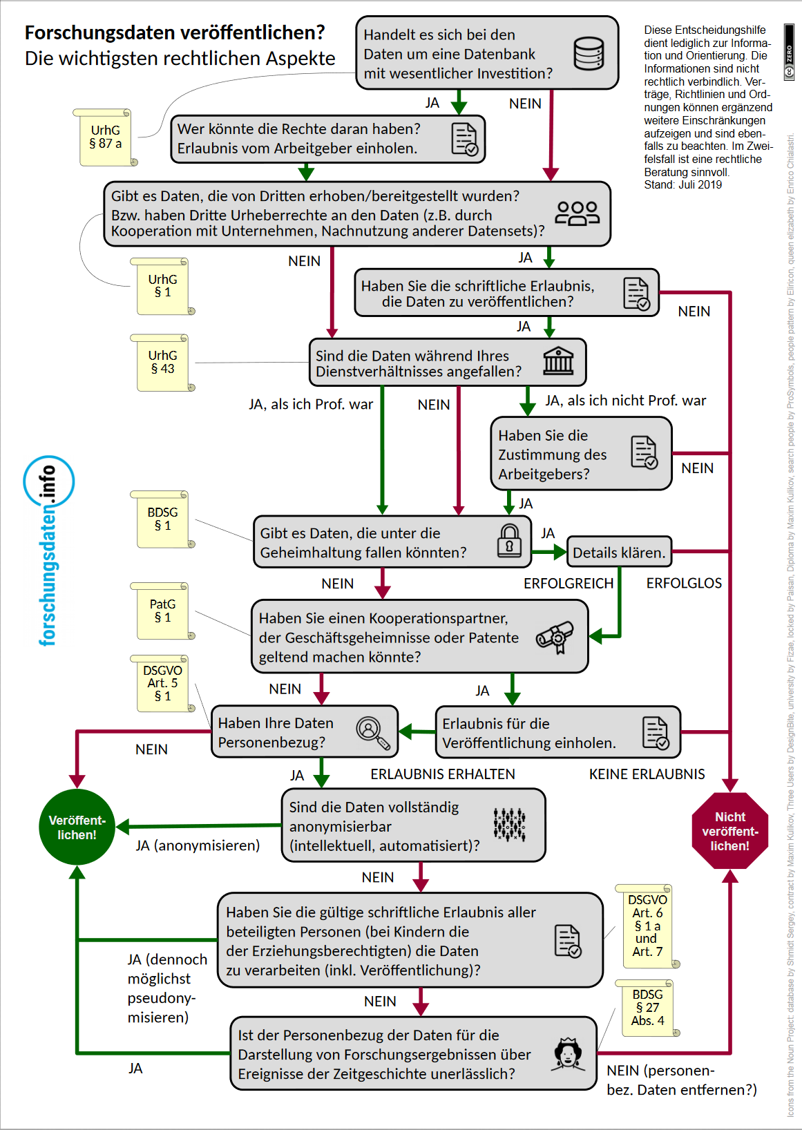 Abb. 9.5: Forschungsdaten veröffentlichen? Eine Entscheidungshilfe zu den wichtigsten rechtlichen Aspekten bei der Veröffentlichung von Forschungsdaten (Quelle: https://zenodo.org/record/3368293)