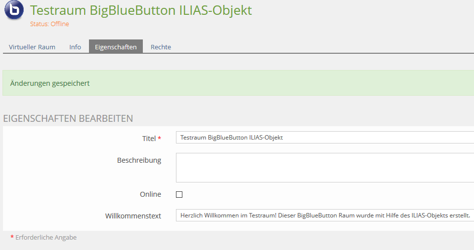 The rooms you have created in ILIAS using the BigBlueButton plugin can only be opened in ILIAS by course administrators. Course participants can only join a room after it has been opened by an administrator. So please open your rooms early enough to avoid confusion among participants.