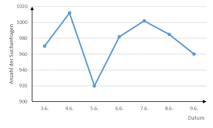 Beispiel: Auf einem Suchportal wird die Anzahl an Suchanfragen verschiedener Begriffe statistisch erhoben. Die Anzahl der Suchanfragen für den Begriff „Diagramme“ im Zeitraum vom 2.6.2018 bis 9.6.2018 ist im folgenden Diagramm abgebildet.