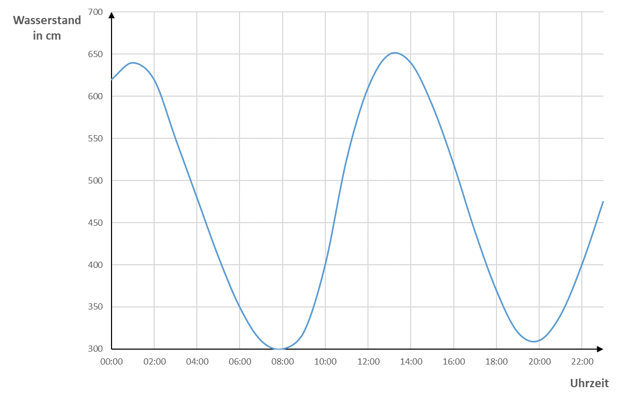 Graphik erstellt in Anlehnung an Daten von: Bundesamt für Schifffahrt und Hydrographie: Wasserstandsvorhersage Nordsee. Cuxhaven, Steubenhöft, Elbe am 21.03.2021. URL: https://www.bsh.de/DE/DATEN/Wasserstand_Nordsee/wasserstand_nordsee_node.html (abgerufen am 22.03.2021, 14:30 Uhr)