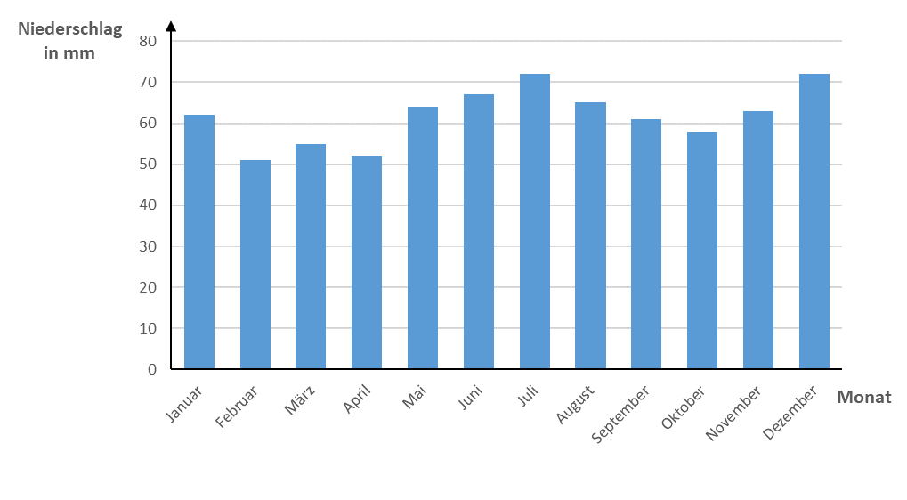 Graphik erstellt in Anlehnung an: climate-data.org. Klima Gießen (Deutschland): Wetter, Klimatabelle & Klimadiagramm. https://de.climate-data.org/europa/deutschland/hessen/giessen-151/ (zuletzt abgerufen am: 23.03.2021, 15:20 Uhr)