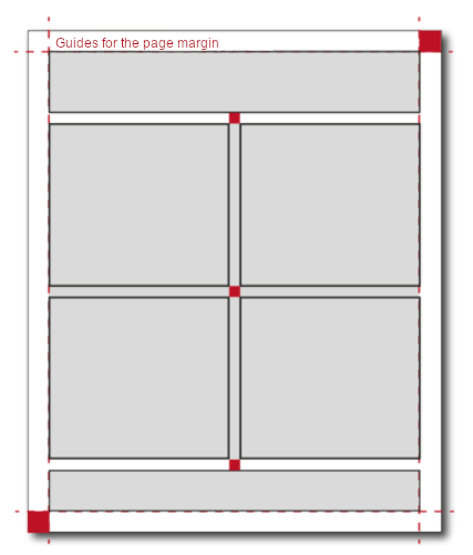 For instance, use a colourful square with a side length half the size of the page margin for alignment (guide area, red on figures).