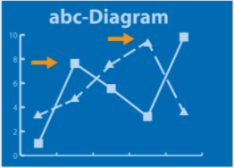 Example: blue, light blue and orange-yellow as a contrast