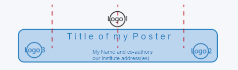 Align the title so that it has the same distance to the top as the addresses have to the bottom (see second figure). Now place the list of authors and their institute address(es). Now possible logos (institute, university, sponsors, etc.) can be placed. | |