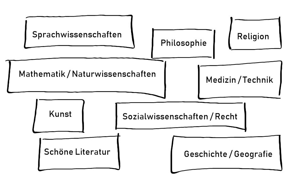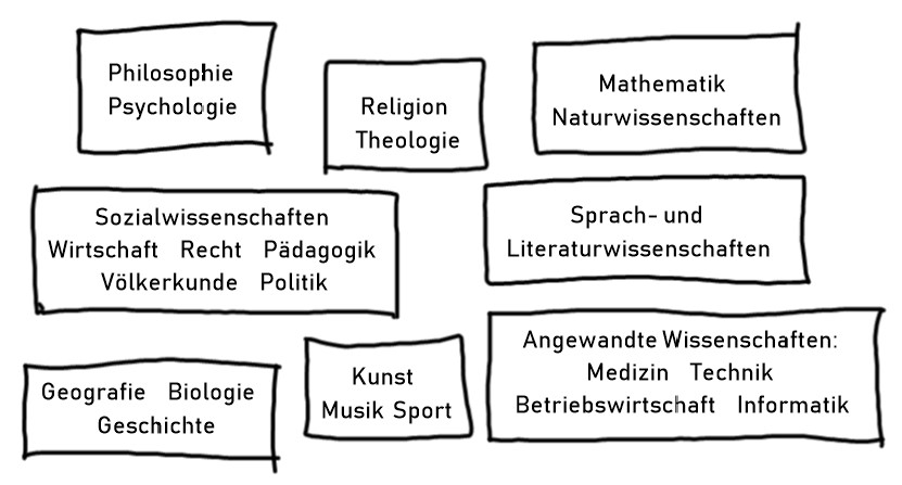 ![]() | Was denken Sie, wo ist Ihr Studienfach einzuordnen? Schauen Sie sich bitte die folgenden Übersichten an und versuchen Sie, Ihr Wissensgebiet einzusortieren! |