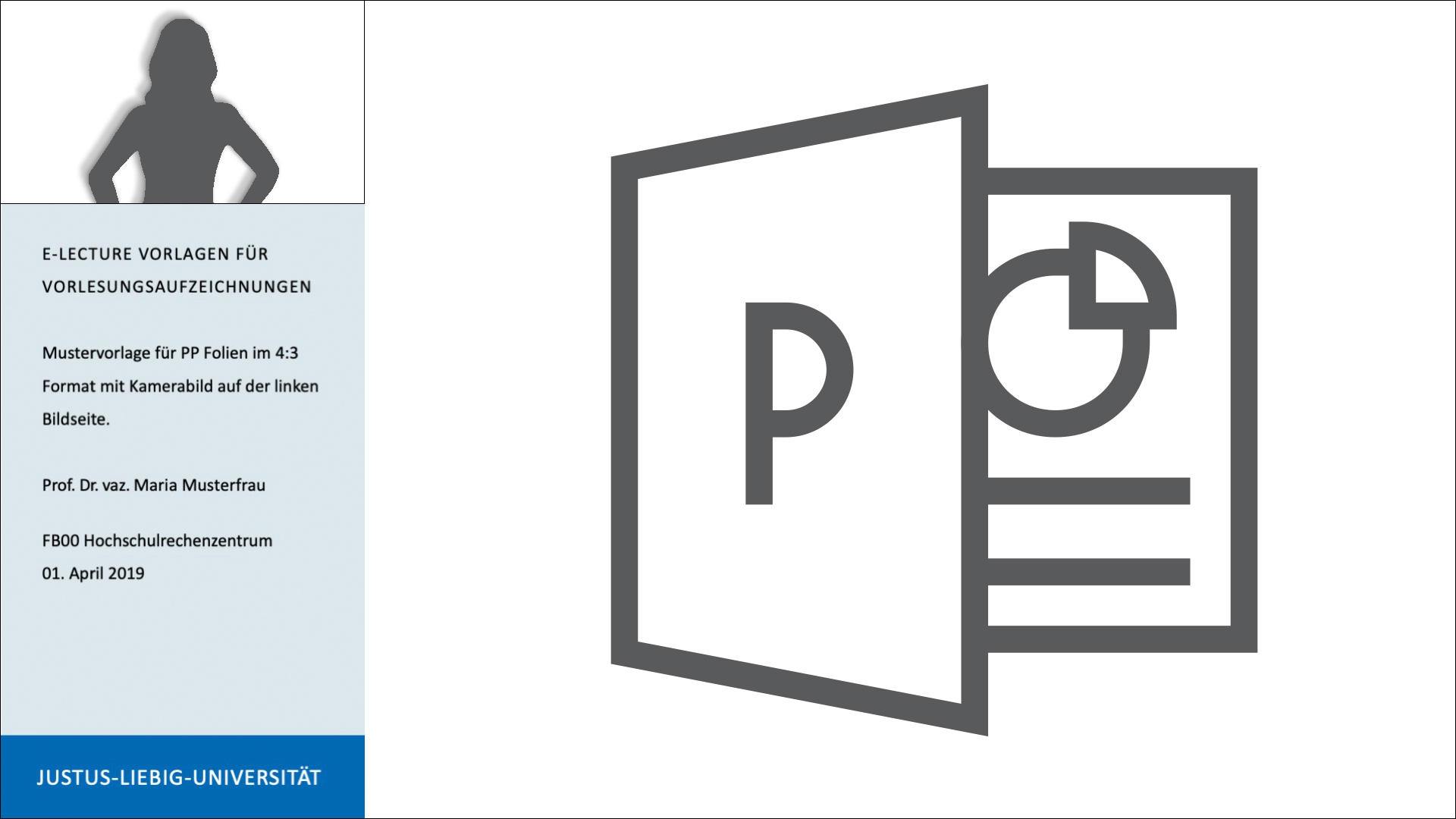 Eine einfache Möglichkeit, die Sie vermutlich bereits beherrschen, wären bspw. farblich gekennzeichnete PowerPoint Folien mit entsprechenden Themenüberschriften als visuelle Marker für Wiederholungen, Kapitelübersichten oder neue Inhalte. Wenn Sie die PowerPoint Vorlage im Coporate Design der JLU Gießen verwenden, gibt es dafür z.B. spezielle Folien mit blauen Hintergrund, die auch beim schnellen Durchsuchen eines Videos für die Betrachtenden leicht wiedererkennbar sind und deren Orientierung unterstützen.