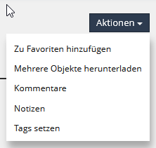 - Klicken Sie auf das Aktionsmenü des jeweiligen Objekts (Dreieck rechts neben dem Objekt)
