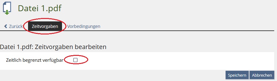 Beispiel: Eine Datei ist nur während der Workshop-Zeit einsehbar (weitere Ideen: einen Test oder eine Übung zeitlich begrenzt verfügbar machen, Vorlesungsaufzeichnungen Woche für Woche verfügbar machen).