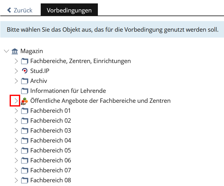 Schritt 3 (ohne Bild): in dem sich öffnenden Baum das Objekt auswählen, das für die Vorbedingung genutzt werden soll (Hier wäre das "Datei 1")