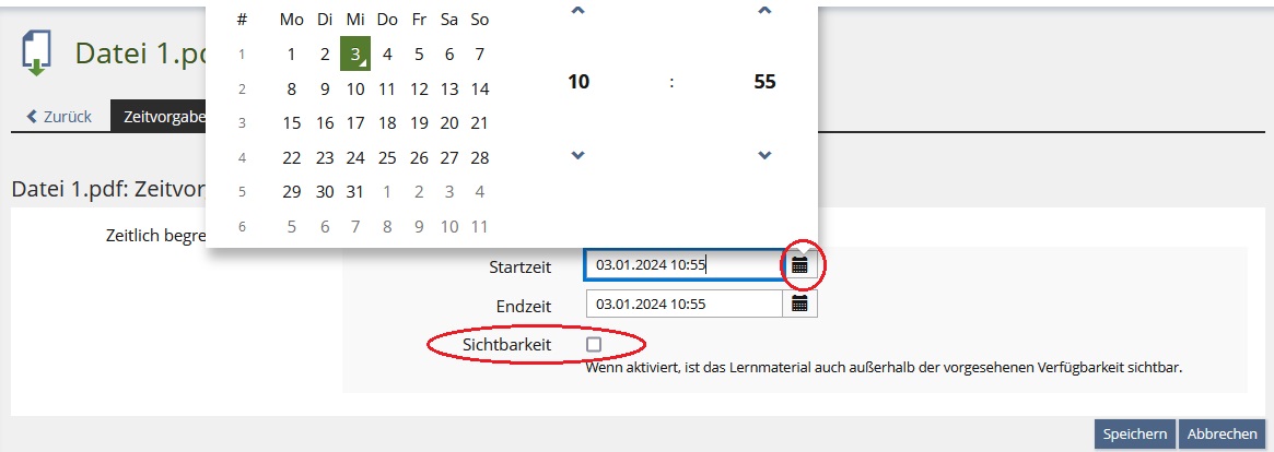 Materialien bzw. Objekte sind erst ab einem bestimmten Zeitpunkt verfügbar oder sind nur in einem bestimmten Zeitraum verfügbar (und danach nicht mehr).