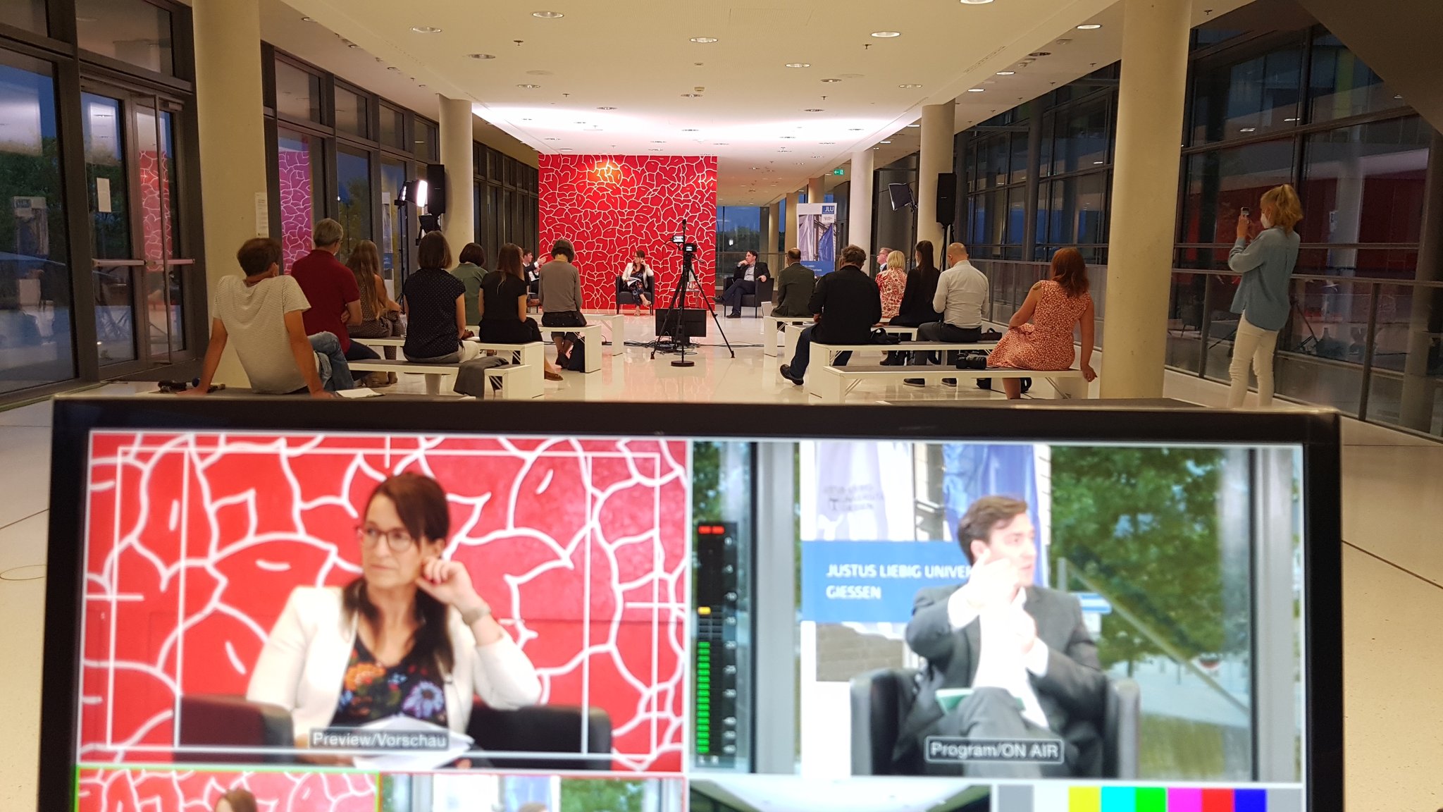 Podiumsdiskussion zur Oberbürgermeister-Wahl: Das JLU-Präsidium lud im September 2021 zu einer Podiumsdiskussion mit den fünf Anwärtern auf das Amt des Oberbürgermeisters der Stadt Gießen ein. Die Veranstaltung wurde im Hybridformat geplant: Dies ermöglichte es, wenige Gäste vor Ort zu begrüßen und gleichzeitig per Livestream eine große Zuschauerzahl zu erreichen. Ort der Veranstaltung war das Foyer der Neuen Chemie am Heinrich-Buff-Ring. Die HR-Journalistin Eva Maria Roessler moderierte durch den Abend.