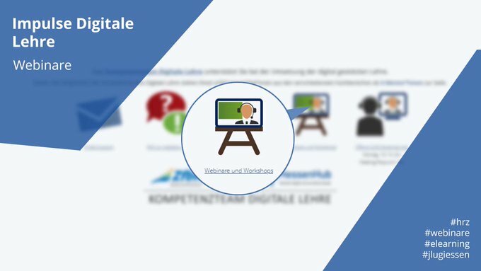 - „Webseiten – Webinare – Wegweiser: Ein Streifzug durch die Unterstützungsangebote an der JLU für Ihre (digital gestützte) Lehre“