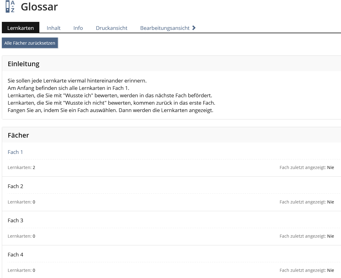 - Lernkarten-Training direkt im Glossar: Begriffe und Definitionen lassen sich jetzt direkt als Lernkarten nutzen. So fördern Sie das Lernen auf spielerische Weise.