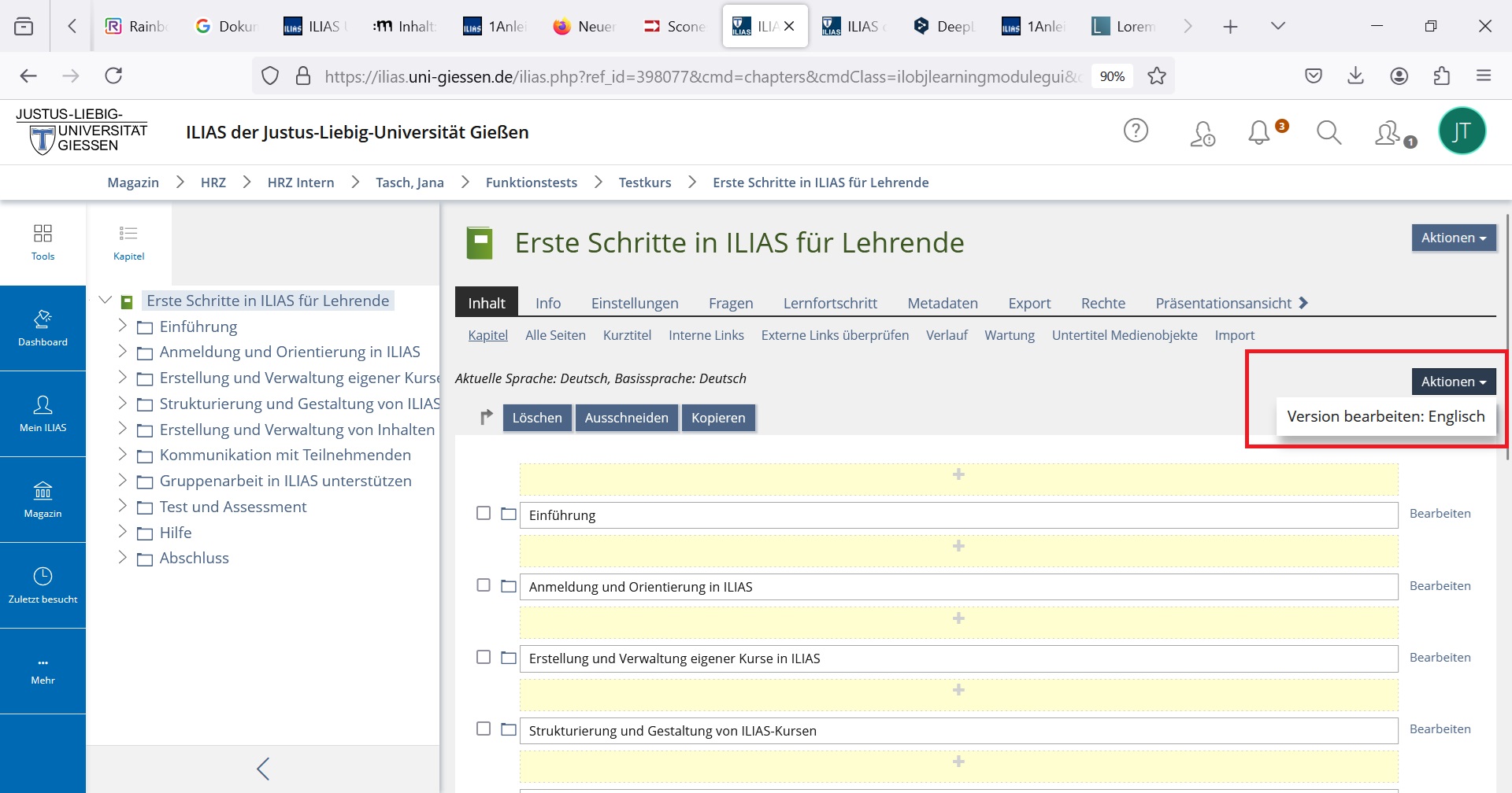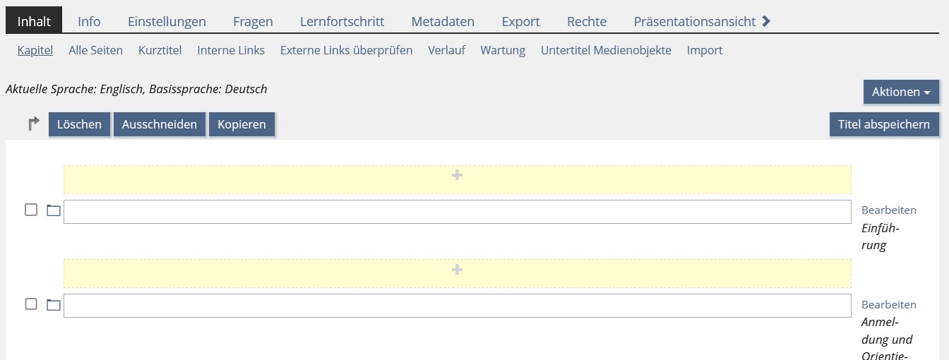 Um ein Lernmodul in mehreren Sprachen zur Verfügung zu stellen, ist das Vorgehen wie bereits beschrieben, zusätzlich müssen noch die Titel der Kapitel, Unterkapitel und Seiten übersetzt werden.