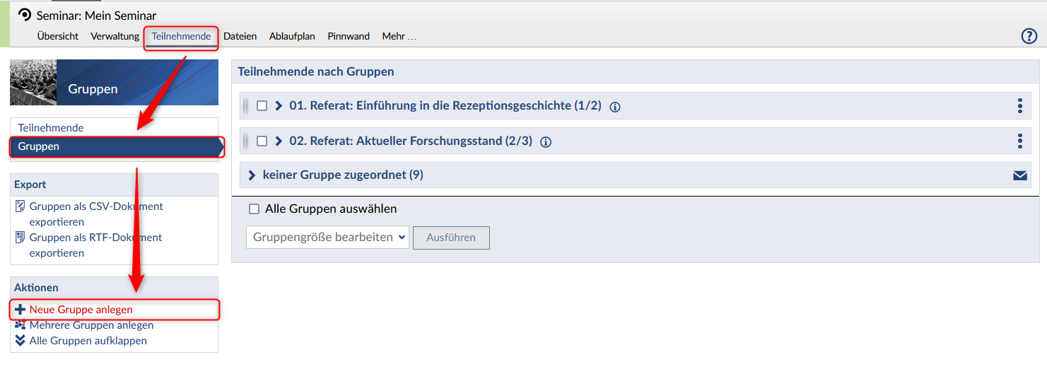 Legen Sie für jedes Referatsthema eine Gruppe an: