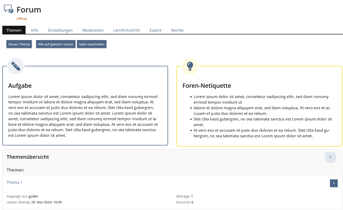 - Lernfortschritt im Forum: Verfolgen Sie jetzt auch den Lernfortschritt Ihrer Teilnehmenden im Forum. Legen Sie fest, wie viele Beiträge notwendig sind, um das Forum als "bearbeitet" zu markieren.