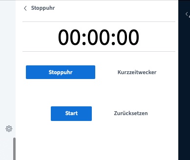 In der Sitzung ist es nun möglich, einen Countdown (Timer) oder eine Stoppuhr anzuzeigen. Sie werden allen Teilnehmenden angezeigt und es erfolgt eine akustische Benachrichtigung, wenn der Timer abläuft.