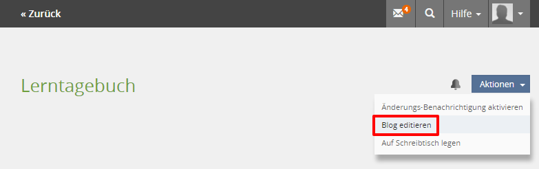 Öffnen Sie das Menü "Aktionen" in der Titelleiste des Blogs und wählen Sie "Blog editieren" aus.