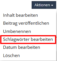 Klicken Sie im Kasten "Schlagwörter" rechts von Ihrem Eintrag auf den Link "Schlagwörter bearbeiten".