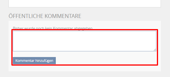 Unter jedem Eintrag befindet sich ein Eingabefeld für "Öffentliche Kommentare". Um einen neuen Kommentar hinzuzufügen, geben Sie hier Ihren Kommentar ein und klicken anschließend auf den Button "Kommentar hinzufügen", um Ihren Kommentar abzuspeichern.