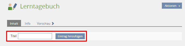 Geben Sie in das Texteingabefeld Titel eine Überschrift für Ihren Eintrag ein und klicken Sie auf Eintrag hinzufügen.