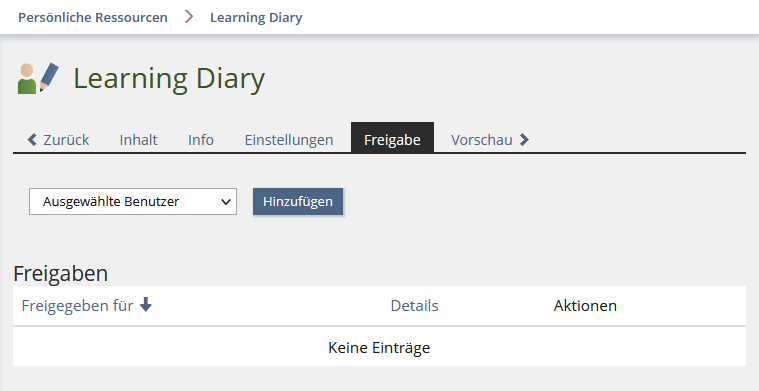 Um anderen Kursteilnehmenden ein Portfolio zugänglich zu machen, können Nutzende ihr Portfolio auch für eine bestimmte Person oder Gruppe freigeben. Auf diese Weise könnten andere Personen das Portfolio auch Kommentieren (wenn die Kommentarfunktion zuvor aktiviert wurde).