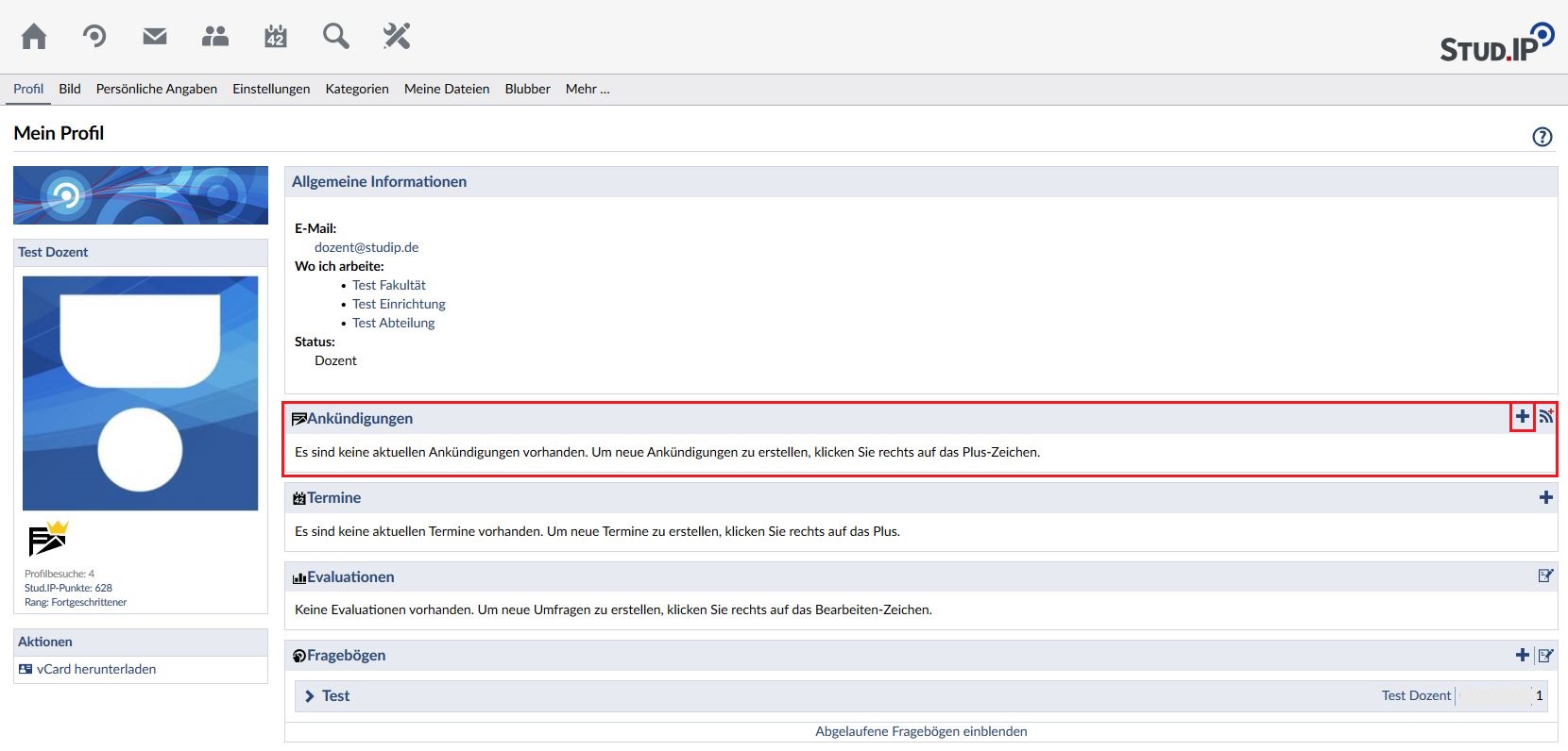 Stud.IP Hilfe: Anwenderhilfe » Tools » Ankündigungen