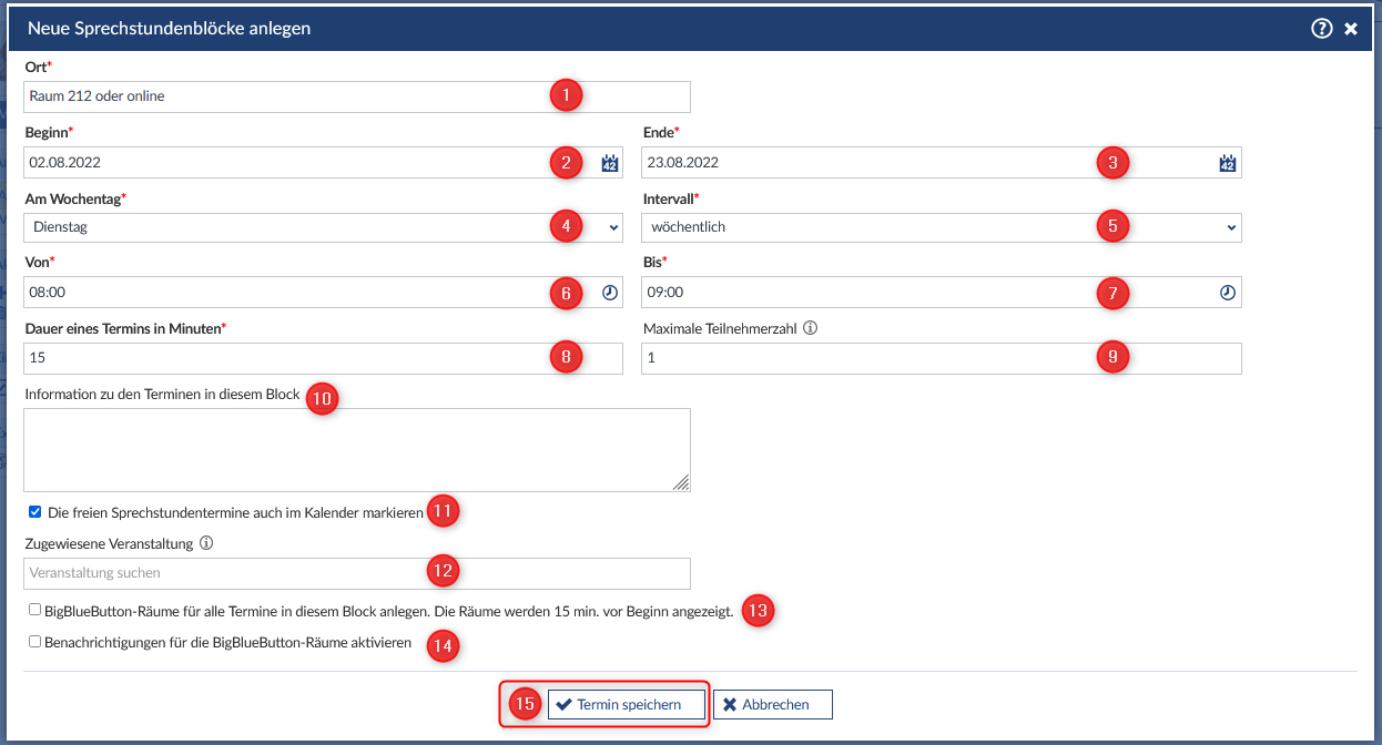 15. Nicht vergessen: Auf den Button "Termin speichern" klicken.