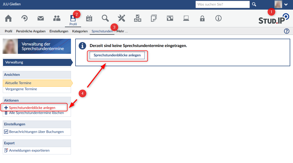 Stud.IP Hilfe: Hilfethemen » Persönliches » Profil » Sprechstunden
