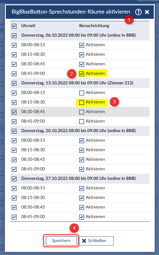 Teilnehmer:innen in eine Sprechstunde eintragen/einladen