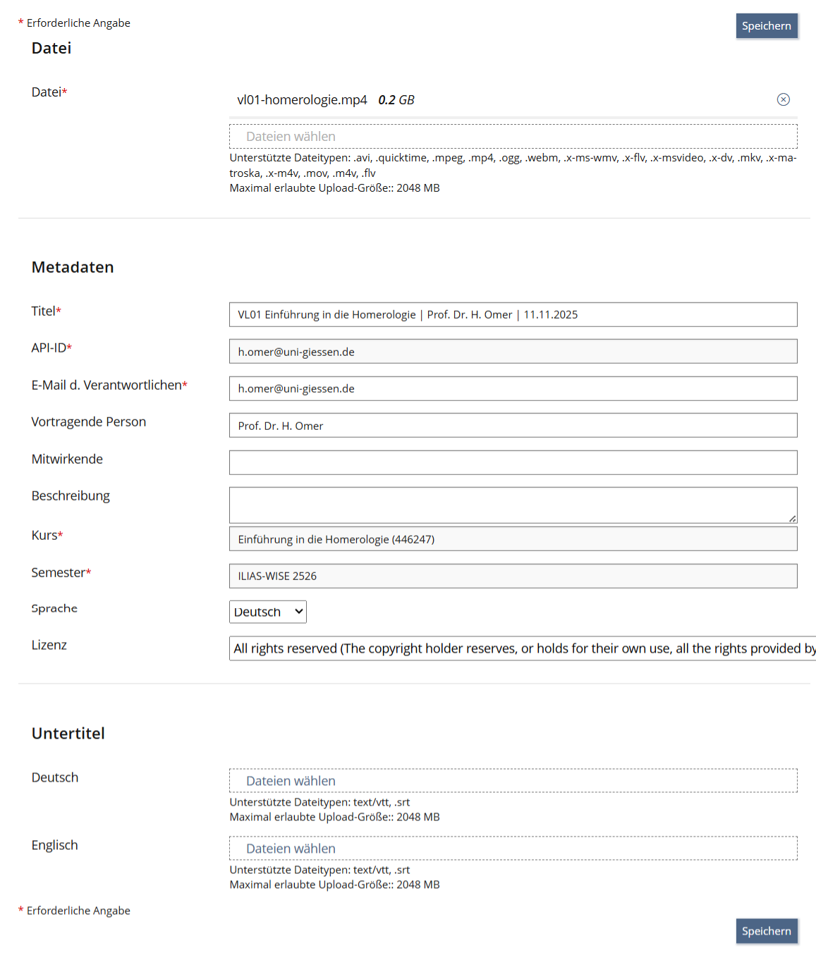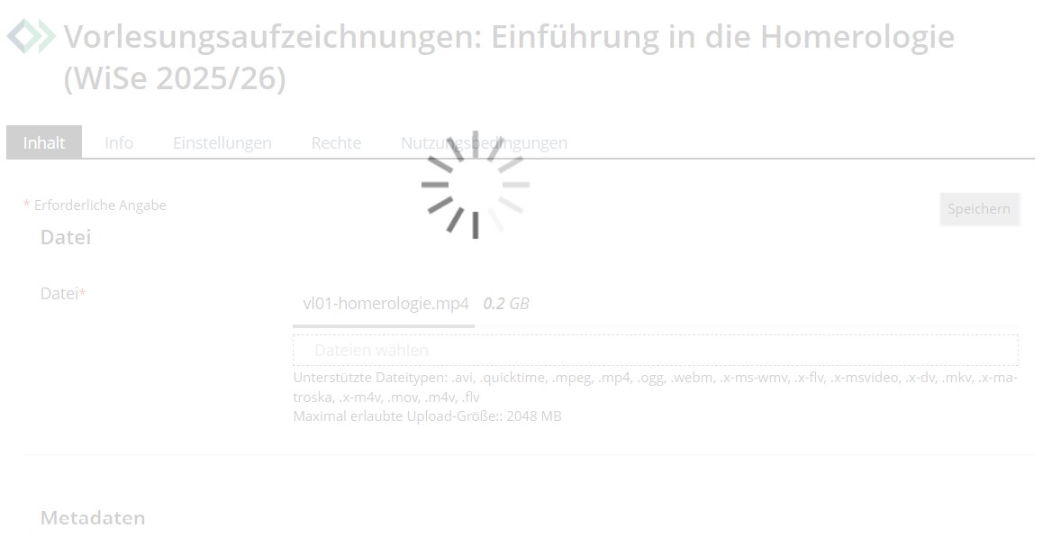 Wenn Sie nun auf den Button „Speichern“ klicken, wird das ausgewählte Video auf den Opencast-Server hochgeladen.