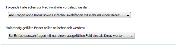 und für 2. "Bei Einfachauswahlfragen mit nur einem ausgefüllten Feld dieses als Kreuz werten":