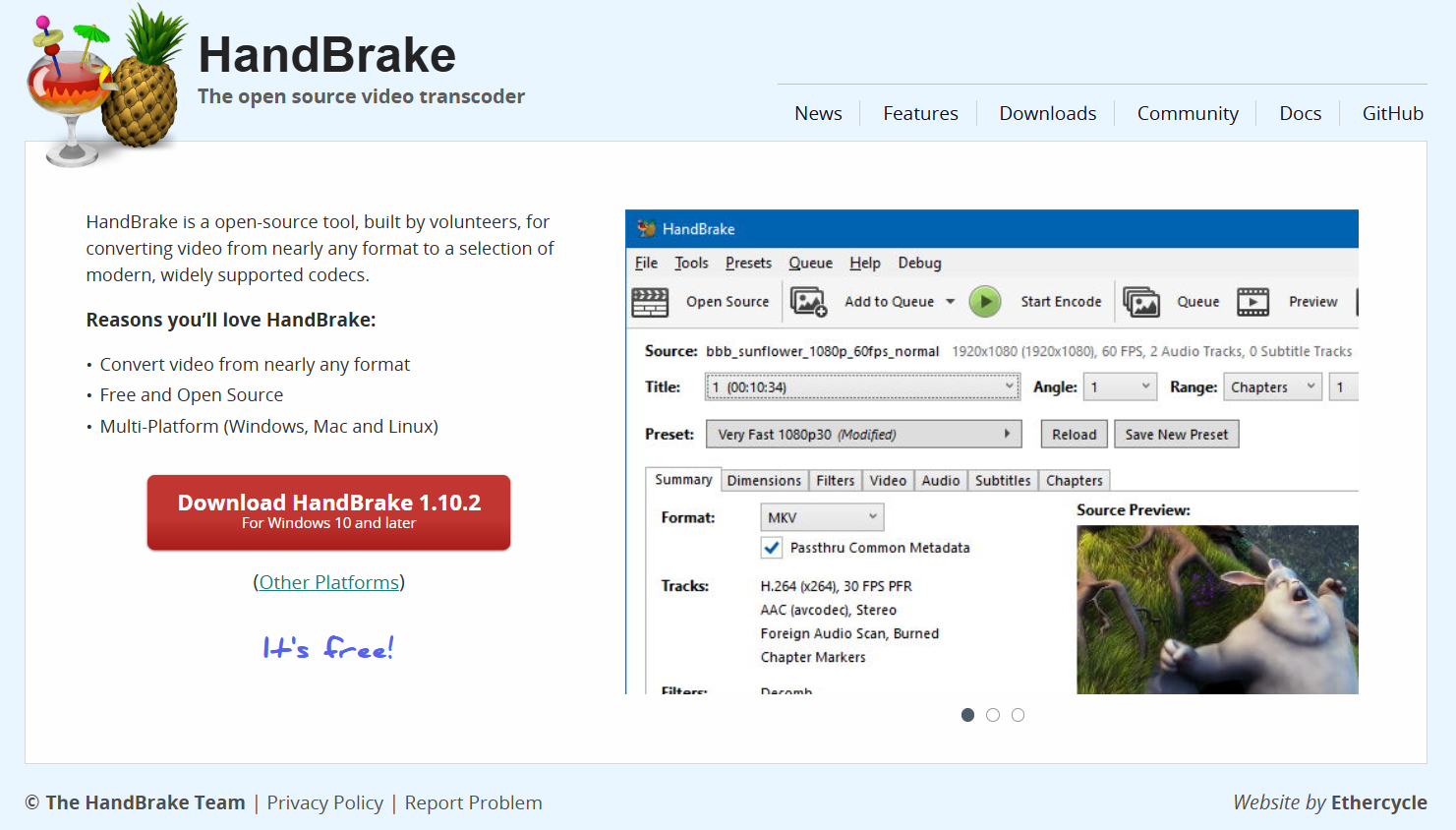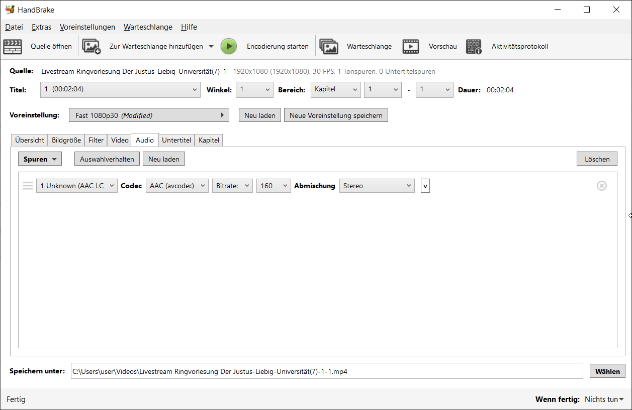 Mit dem Handbrake Medienkonverter lassen sich schnell Videodateien in andere Formate wandeln. Handbrake unterstützt dabei eine Reihe weit verbreiteter Codecs, die sich auf den Webseiten der Justus-Liebig-Universität Gießen einbetten lassen. Handbrake ist plattfom-unabhängig und wird für Mac, Linux und Windows auf der Homepage zum Download angeboten.