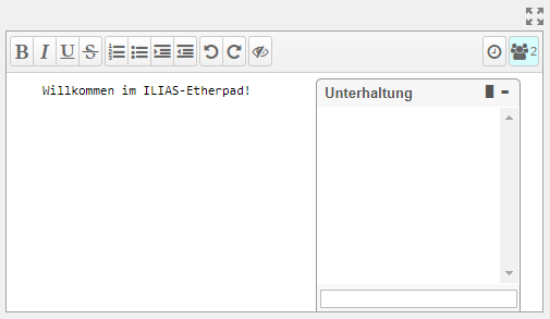 Ein neues Pad kann innerhalb eines ILIAS-Kurses angelegt werden. Alle Kurs- bzw. Veranstaltungsteilnehmer sind dann berechtigt an einem Pad gemeinsam zu arbeiten.