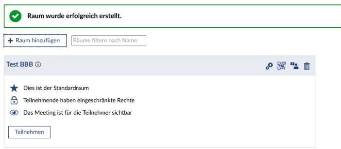 - „Raum hinzufügen“: Legt einen neuen Raum in BigBlueButton an.