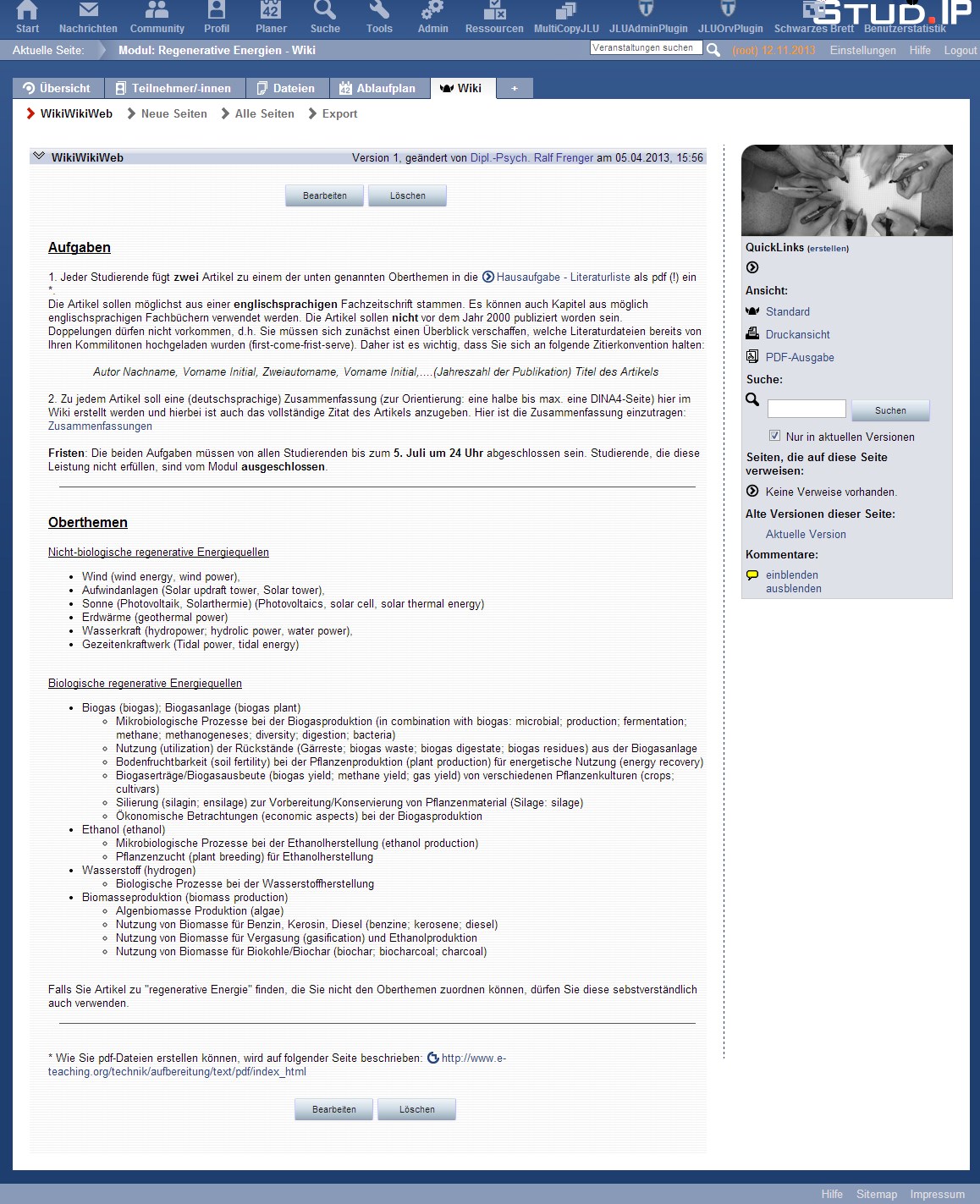 Profilmodul im FB09: Neues Konzept mit Wiki-Einsatz
